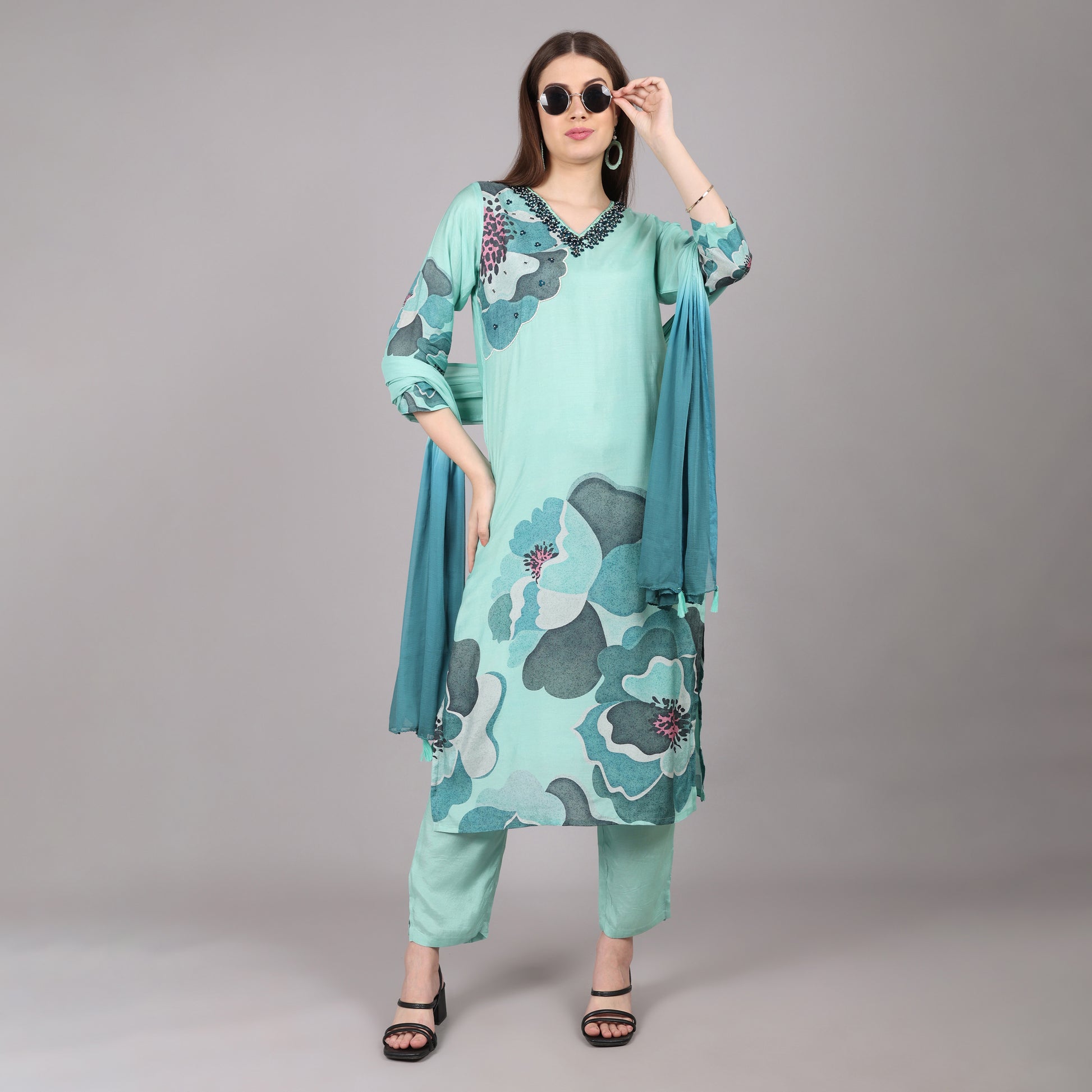 Digital Print Kurta with pants and dupatta (Chiffon)